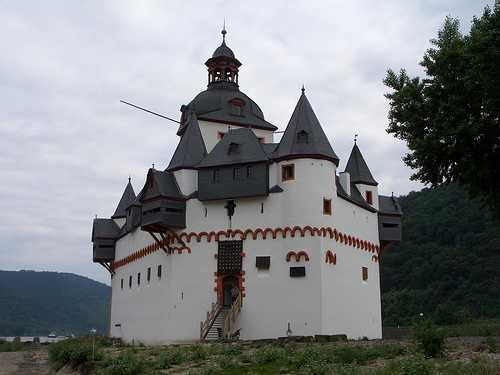 El Castillo Burg Pfalzgrafenstein está en medio del rio Rin, al oeste de Francfort y Wiesbaden y cerca de Coblenza. Fue construido en el siglo XIV por la casa real de Baviera. Por su excelente ubicación servía como control aduanero de los barcos que navegaban el río. Actualmente se puede acceder al islote y al castillo por medio de ferrys. Ha sido acondicionado como museo y es Patrimonio de la Humanidad desde el 2002.