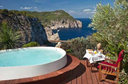 Una de las piscinas infinitas más espectaculares de España la encontramos en Ibiza, concretamente en el Hotel Hacienda Na Xamena. El establecimiento, también de 5 estrellas, ha colocado una suntuosa piscina sobre un acantilado de 180 metros de altura. El hotel está completamente resguardado por un espeso bosque de pinos. Arropado por la naturaleza más encantadora de la isla, las habitaciones de este lugar son lujosas hasta el extremo. Lo que más llama la atención son las ocho piscinas de agua de mar unidas entre sí. Además cuenta con cascadas suspendidas, por las que el agua fluye como una preciosa cascada infinita hacia el mar.