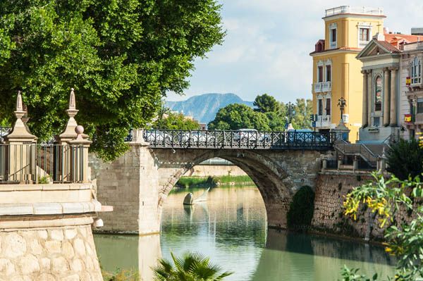 Cerca de este palacio encontramos otro de los iconos que ver en Murcia, el Puente Viejo o el Puente de los Peligros. Este puente es conocido por ser el lugar en el que los murcianos se santiguaban al ver a la Virgen de los Peligros para evitar así que una riada se los llevara por delante.
