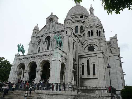 En lo alto de la colina, llegamos a la Basílica del Sacre Coeur, o Sagrado Corazón, una iglesia imponente, casi a la altura de la catedral de Notre Dâme. A la basílica se puede llegar subiendo los escalones o bien cogiendo el funicular. Éste fue el escenario, por ejemplo, de la famosa película francesa Amélie.